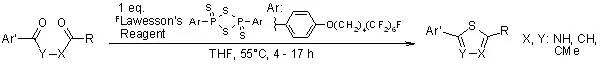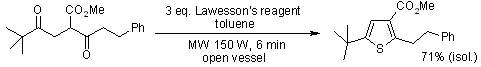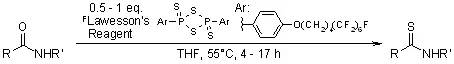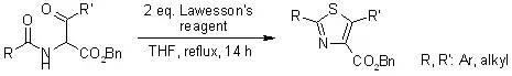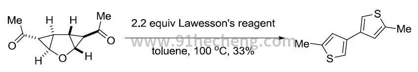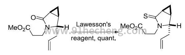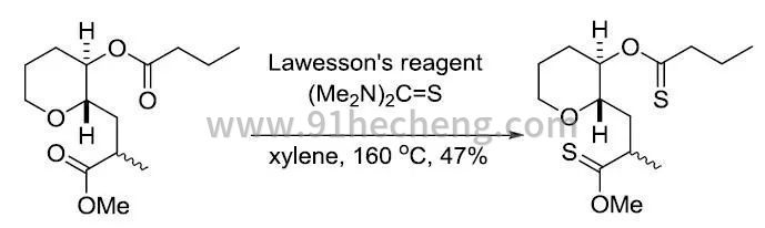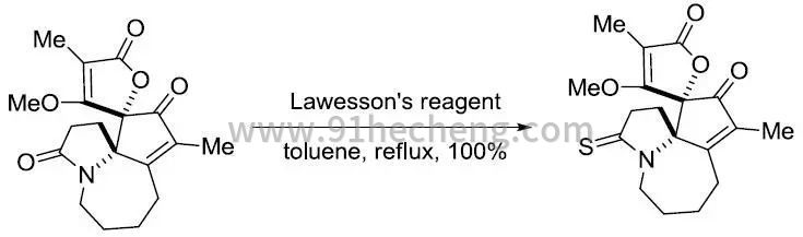 在与劳森试剂的反应中,酮,酰胺,内酰胺和内酯的反应活性都比酯高,因此在一些选择性反应中,可以在特定条件下让酯基不参与反应,如下面的例子: