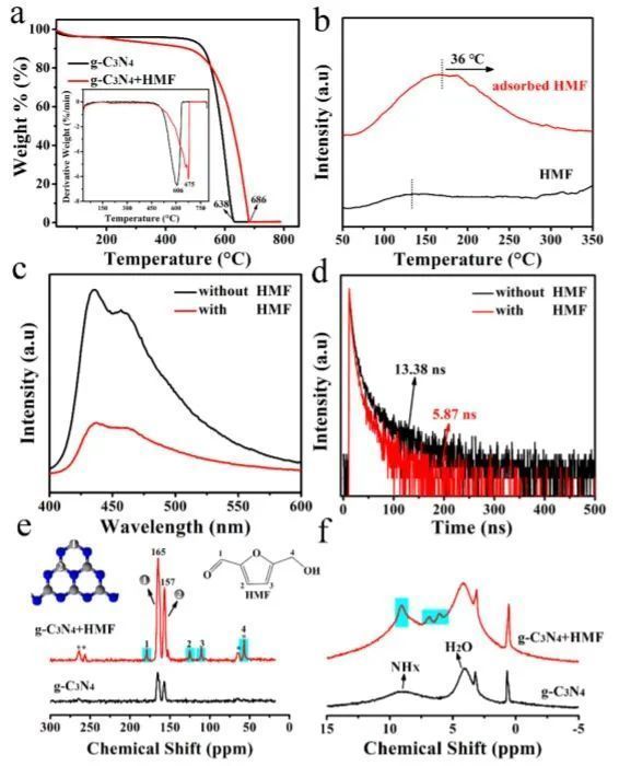 固态核磁共振(NMR)和密度泛函理论(DFT)结果表明,HMF分子的扭曲结构可以在HMF和UCNT之间形成强相互作用,降低HMF氧化的脱氢能垒,进而提高了催化活性。